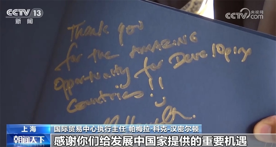 總臺(tái)央視記者昨天專訪了國際貿(mào)易中心執(zhí)行主任帕梅拉·科克-漢密爾頓,這是她首次參加進(jìn)博會(huì),她表示,進(jìn)博會(huì)是全球獨(dú)一無二的進(jìn)口平臺(tái),包括進(jìn)博會(huì)在內(nèi),中國持續(xù)開放的舉措正在推動(dòng)世界發(fā)展邁出新步伐。