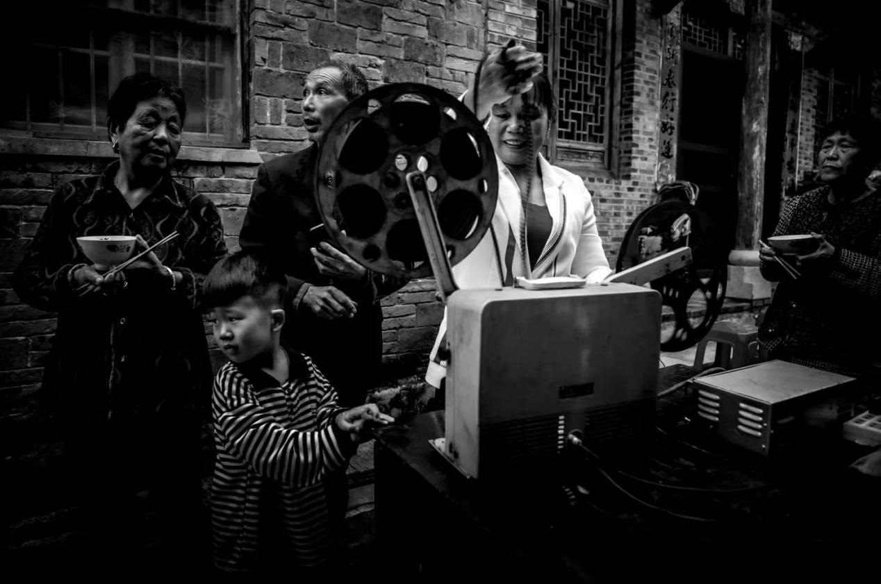 1983年,鄉(xiāng)里成立了電影放映隊(duì),曹毅成了隊(duì)長(zhǎng),還參加了電影培訓(xùn)班,扎扎實(shí)實(shí)地學(xué)了放映技術(shù)、電工等好多課程,成了專業(yè)的放映員。那時(shí)片源少,一張片子各個(gè)鄉(xiāng)排期輪流放映,讓曹毅最開(kāi)心的事,就是坐上幾個(gè)小時(shí)的公交車去縣里拿膠片。有時(shí)揣著膠片回來(lái)的路上就忍不住想樂(lè),哪回放新電影都像打仗一樣,人山人海,得防著別碰壞了放映機(jī),還得留心會(huì)有哪個(gè)村連夜來(lái)?yè)尫庞硻C(jī)?!翱傆幸蝗f(wàn)人,銀幕前后都是人,背面都有人看。在稻田里面把那稻子割完了以后,電影就在稻場(chǎng)里面放,不然地方不夠大?!笨諝庵酗h著稻谷的香味,不少人會(huì)盤腿坐在地上,扎扎實(shí)實(shí)看完一部電影。