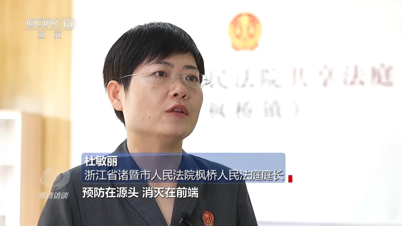 浙江省諸暨市人民法院楓橋人民法庭庭長杜敏麗:“把后端力量移到了前端,把更多矛盾糾紛預防在源頭、消滅在前端,后面的訴訟相當于案件量也慢慢減少。”