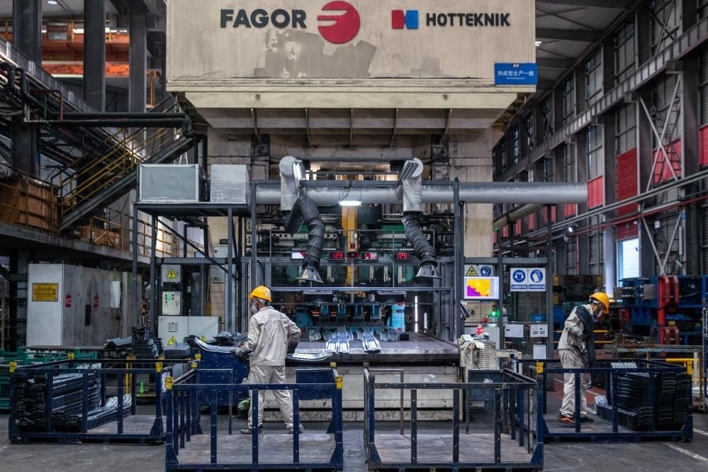 在位于重慶市兩江新區(qū)的一家機械設備生產(chǎn)企業(yè)的熱壓車間,工人將剛下線的零件裝箱(2023年7月16日攝)。新華社記者儲加音攝