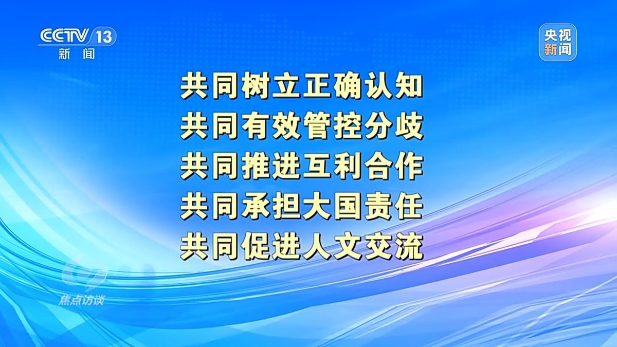 中國人民大學(xué)國際關(guān)系學(xué)院教授 刁大明:現(xiàn)在看舊金山這次會晤本身,中方非常清晰地從負責(zé)任大國角度出發(fā),從對歷史、對人民、對世界角度出發(fā),提出了一個中美兩國正確相處之道?!拔鍌€共同”是中國提出的一個正確相處之道,也是中國從負責(zé)任角度出發(fā),為穩(wěn)定中美關(guān)系,為更多增進全球福祉提出中國方案。