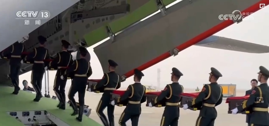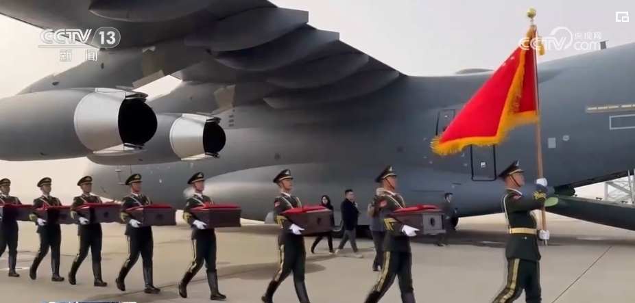 隨后,中方禮兵護(hù)送棺槨走上中國空軍運(yùn)-20運(yùn)輸機(jī)。北京時(shí)間11月23日上午,運(yùn)-20運(yùn)輸機(jī)從仁川國際機(jī)場起飛。