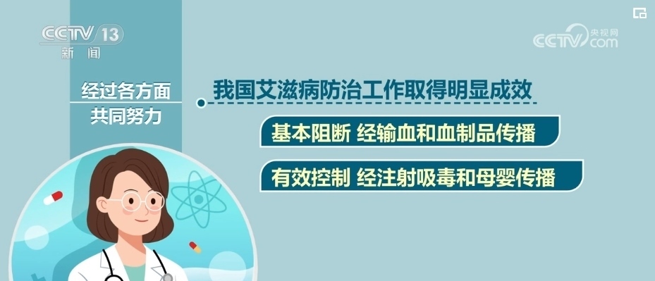 經(jīng)過(guò)各方面共同努力,我國(guó)艾滋病防治工作取得明顯成效,基本阻斷了經(jīng)輸血和血制品傳播,有效控制了經(jīng)注射吸毒和母嬰傳播。