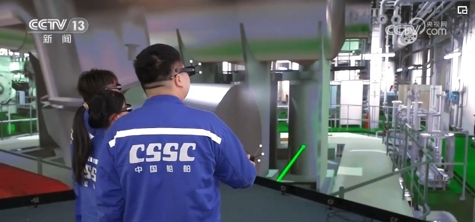 總臺央視記者 吳天白:如今造船靠的就是這艘“數字樣船”,戴上3D眼鏡便置身于一艘液化氣船的機艙,不僅能將船艙內的情況盡收眼底。數字化工具就像庖丁解牛,把船舶這個巨系統拆解得清清楚楚,整合得天衣無縫,從而提升設計、制造的效率。