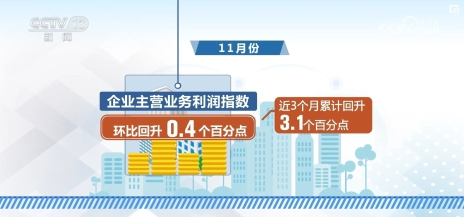 從分項(xiàng)指數(shù)來看,11月份,企業(yè)主營業(yè)務(wù)利潤指數(shù)環(huán)比回升0.4個(gè)百分點(diǎn),近3個(gè)月累計(jì)回升3.1個(gè)百分點(diǎn)。