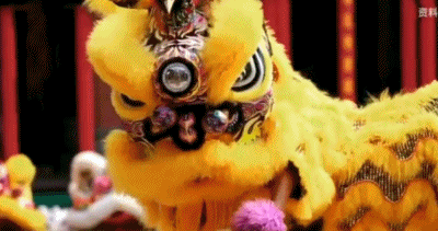 舞動(dòng)的獅子騰起、跳躍、搖頭擺尾