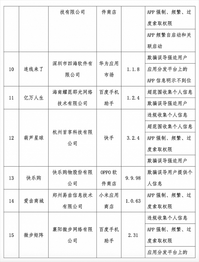 央視網(wǎng)消息:據(jù)工信部網(wǎng)站消息,近期,工信部組織第三方檢測(cè)機(jī)構(gòu)對(duì)群眾關(guān)注的實(shí)用工具、本地生活、網(wǎng)絡(luò)游戲等移動(dòng)互聯(lián)網(wǎng)應(yīng)用程序(APP)及第三方軟件開發(fā)工具包(SDK)進(jìn)行檢查。發(fā)現(xiàn)24款A(yù)PP、SDK存在侵害用戶權(quán)益行為,現(xiàn)予以通報(bào)。