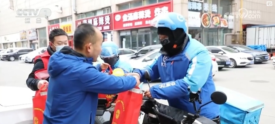 “冬日暖心”行動小分隊隊員們,穿梭于物流公司和外賣小哥驛站,為貨車司機(jī)和外賣員送去方便面等生活用品。環(huán)衛(wèi)工人這兩天掃雪工作量大,很難按時吃上早餐,志愿者們便早早來到城區(qū)的街道,將一份份冒著熱氣的包子和粥送到環(huán)衛(wèi)工手中。