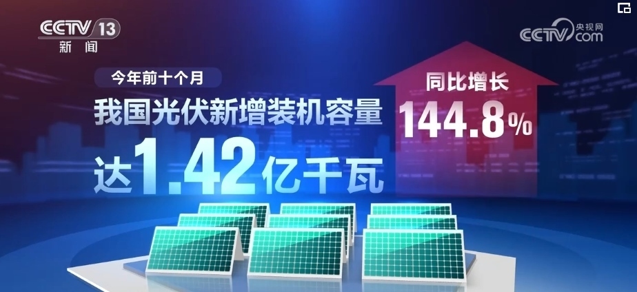 2023年前10個月,我國光伏新增裝機容量達1.42億千瓦,同比增長144.8%。