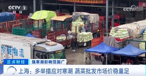 18日一早,上海部分市區(qū)飄起了雪花,與前兩天相比,雖有微弱升溫,但濕度高,體感非常陰冷。記者在上海江橋批發(fā)市場看到,卸貨區(qū)里各類裝箱蔬菜儲備充足,運(yùn)輸車輛來往頻繁。市場管理方表示,目前市場蔬菜供應(yīng)量平穩(wěn)。?