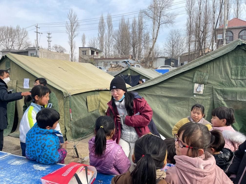 21日上午,馮小霞和24名同伴就從與積石山縣毗鄰的廣河縣抵達(dá)災(zāi)區(qū),開(kāi)展志愿服務(wù)。地震發(fā)生后,和馮小霞類似,來(lái)自多地的志愿者化身“帳篷城”里的“孩子王”,為大家開(kāi)設(shè)了繪畫、文化課程輔導(dǎo)、防災(zāi)救災(zāi)知識(shí)等內(nèi)容的志愿服務(wù)。