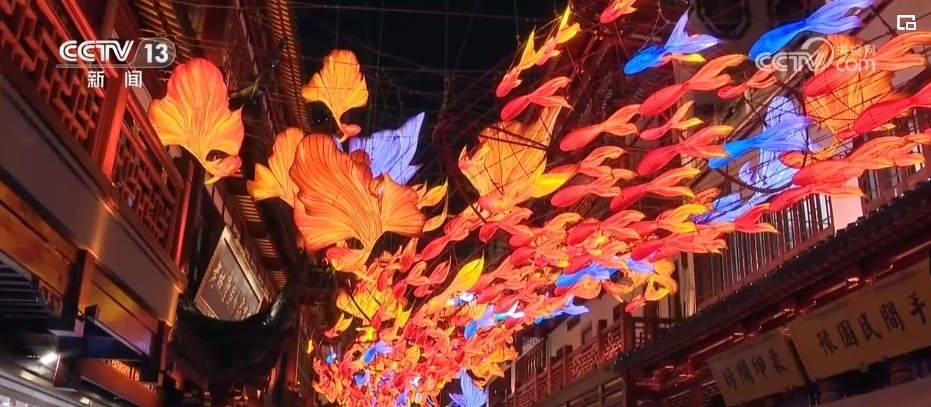 在上海,迎新春的傳統(tǒng)活動(dòng)豫園燈會(huì)正在緊鑼密鼓籌備中。在豫園商城的凝暉路上,名為“一夜魚龍舞”的主題燈組已經(jīng)亮燈。抬眼望去,多彩的魚群匯成游龍回旋的姿態(tài),游走在飛檐斗拱之間,呈現(xiàn)出一片繁華景象。