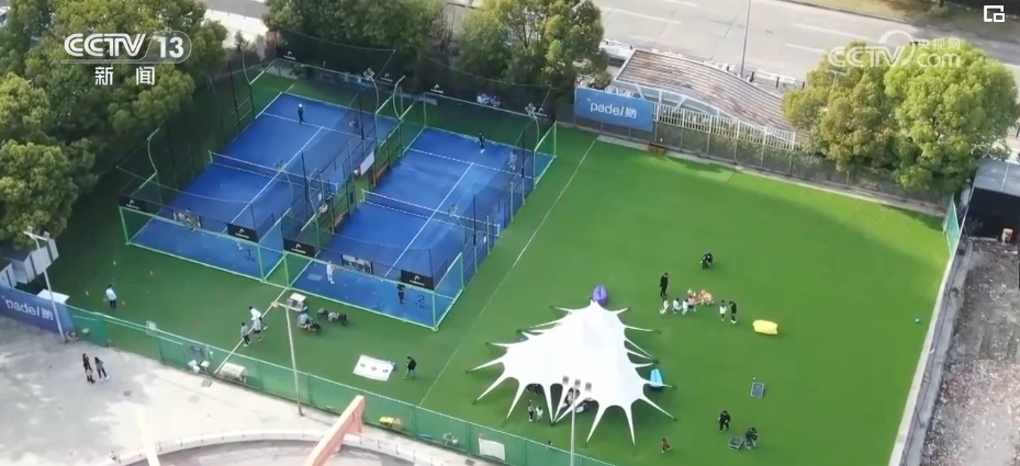 在上海浦東的創(chuàng)意園區(qū)內,藏著一個板式網球和匹克球的運動場,不少人結伴前來體驗。