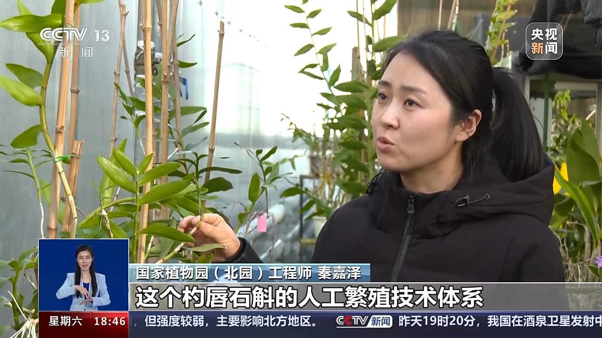國(guó)家植物園(北園)工程師 秦嘉澤:它在野外是屬于瀕危的一個(gè)狀態(tài),當(dāng)下,我們已經(jīng)成功建立了這個(gè)杓唇石斛的人工繁殖技術(shù)體系,然后也成功繁育出了1000多株幼苗。