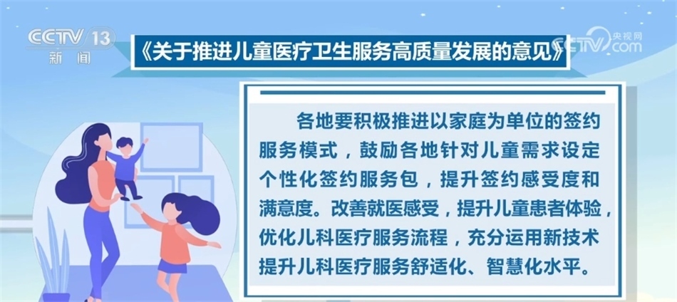 《意見》要求,各地要積極推進(jìn)以家庭為單位的簽約服務(wù)模式,鼓勵各地針對兒童需求設(shè)定個性化簽約服務(wù)包,提升簽約感受度和滿意度。改善就醫(yī)感受,提升兒童患者體驗,優(yōu)化兒科醫(yī)療服務(wù)流程,充分運(yùn)用新技術(shù)提升兒科醫(yī)療服務(wù)舒適化、智慧化水平。
