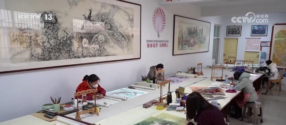 在巨野縣大義鎮(zhèn)王莊村這家新開的畫室里,十幾位村民正在這里專心畫工筆牡丹畫。今年50多歲的曹春靈算是村里的老畫師了,平常農(nóng)忙的時(shí)候她就照顧家里10多畝地,農(nóng)閑的時(shí)候就作畫,每個(gè)月能掙兩三千塊錢。這不臨近春節(jié)畫賣得好,她干脆把兒媳婦也叫過來,她今年的新打算是,要把兒媳培養(yǎng)成畫師。