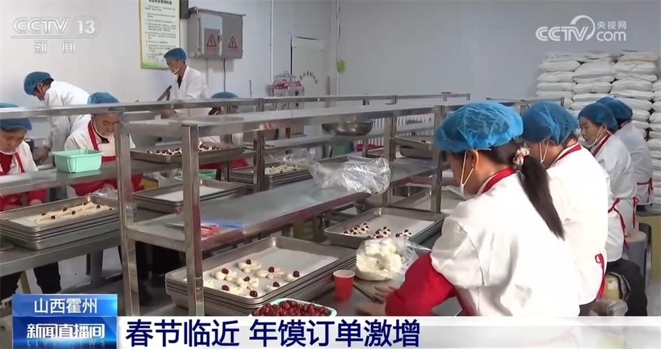 在山西霍州市的年饃加工廠里,制作年饃的師傅們異常忙碌。據(jù)了解,當(dāng)?shù)胤昴赀^節(jié)都會有做年饃、買年饃、品年饃的民俗,隨著春節(jié)臨近,工廠的年饃需求量激增?;糁菔姓限r(nóng)村集體經(jīng)濟(jì)合作社資源,吸納全市12個鄉(xiāng)鎮(zhèn)的120余家加工實體加入,趕做訂單。