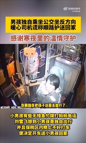 近日在山東青島,黃島公交東2路駕駛員劉雪飛即將到達(dá)終點(diǎn)時(shí),車上一位小男孩遲遲沒下車,詢問(wèn)發(fā)現(xiàn)他坐反了車。男孩慌忙給媽媽打電話,劉雪飛想到男孩獨(dú)自出行晚上也不好打車,決定開車送他回家。雖然并不順路,劉雪飛還是跟孩子?jì)寢屨f(shuō)可以順路送他,最終將男孩平安送回家。感謝善意的謊言,感謝寒夜里的溫情守護(hù)!