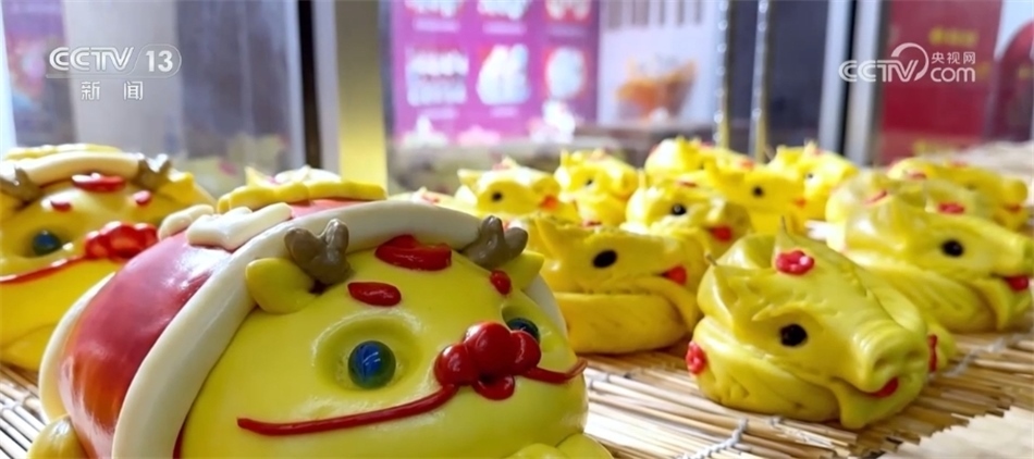 除了賞燈,龍帽、龍燈籠等龍年元素的商品也被市民爭相搶購,此外,不少餐飲店還推出了龍造型的糕點,受到食客歡迎。