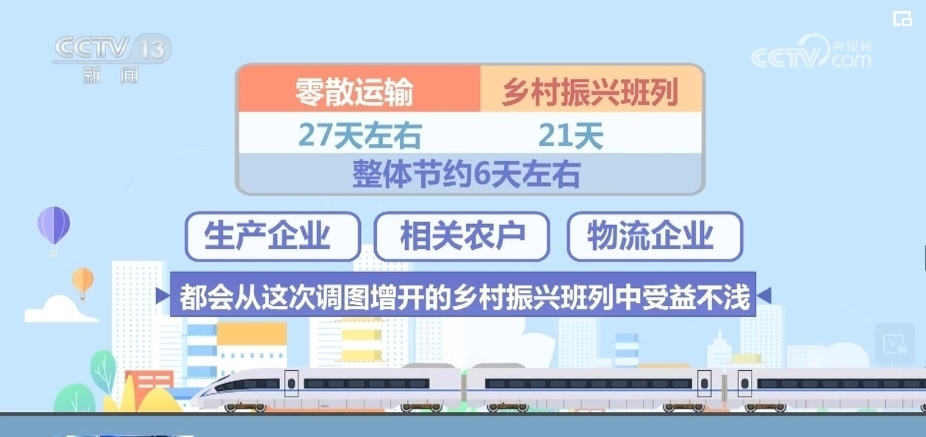 通過(guò)以上的對(duì)比不難看出,零散運(yùn)輸全流程需要27天左右,鄉(xiāng)村振興班列需要21天,整體節(jié)約6天左右。不管是對(duì)于生產(chǎn)企業(yè)以及相關(guān)農(nóng)戶,還是對(duì)于物流企業(yè),都會(huì)從這次調(diào)圖增開的鄉(xiāng)村振興班列中受益不淺。
