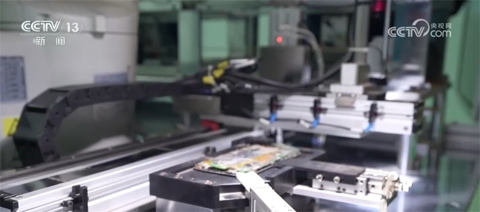 手機(jī)自動(dòng)化回收企業(yè)負(fù)責(zé)人 李燦康:在不拆機(jī)的情況下,檢測手機(jī)內(nèi)部是否有維修情況,檢測效率從進(jìn)到出只需要7—8秒。