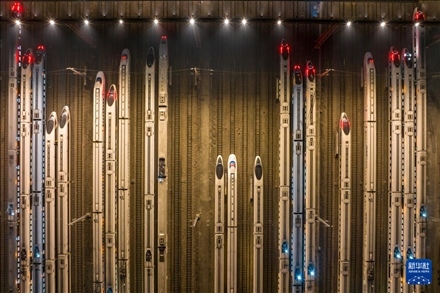 1月26日凌晨,動車組列車??吭谀暇﹦榆嚩文暇┠蟿榆囘\用所存車線上(無人機照片)。新華社發(fā)(方東旭攝)