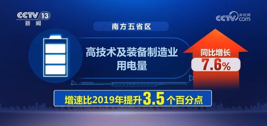 而在南方電網(wǎng)經(jīng)營區(qū)域內(nèi)的廣東、廣西等五省區(qū),高技術(shù)及裝備制造業(yè)用電量同比增長7.6%,增速比2019年提升3.5個百分點,反映工業(yè)經(jīng)濟(jì)轉(zhuǎn)型升級態(tài)勢加快。