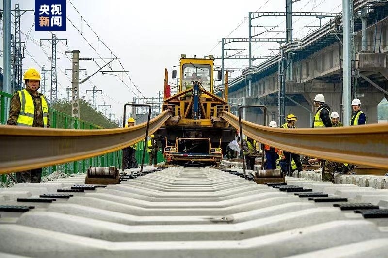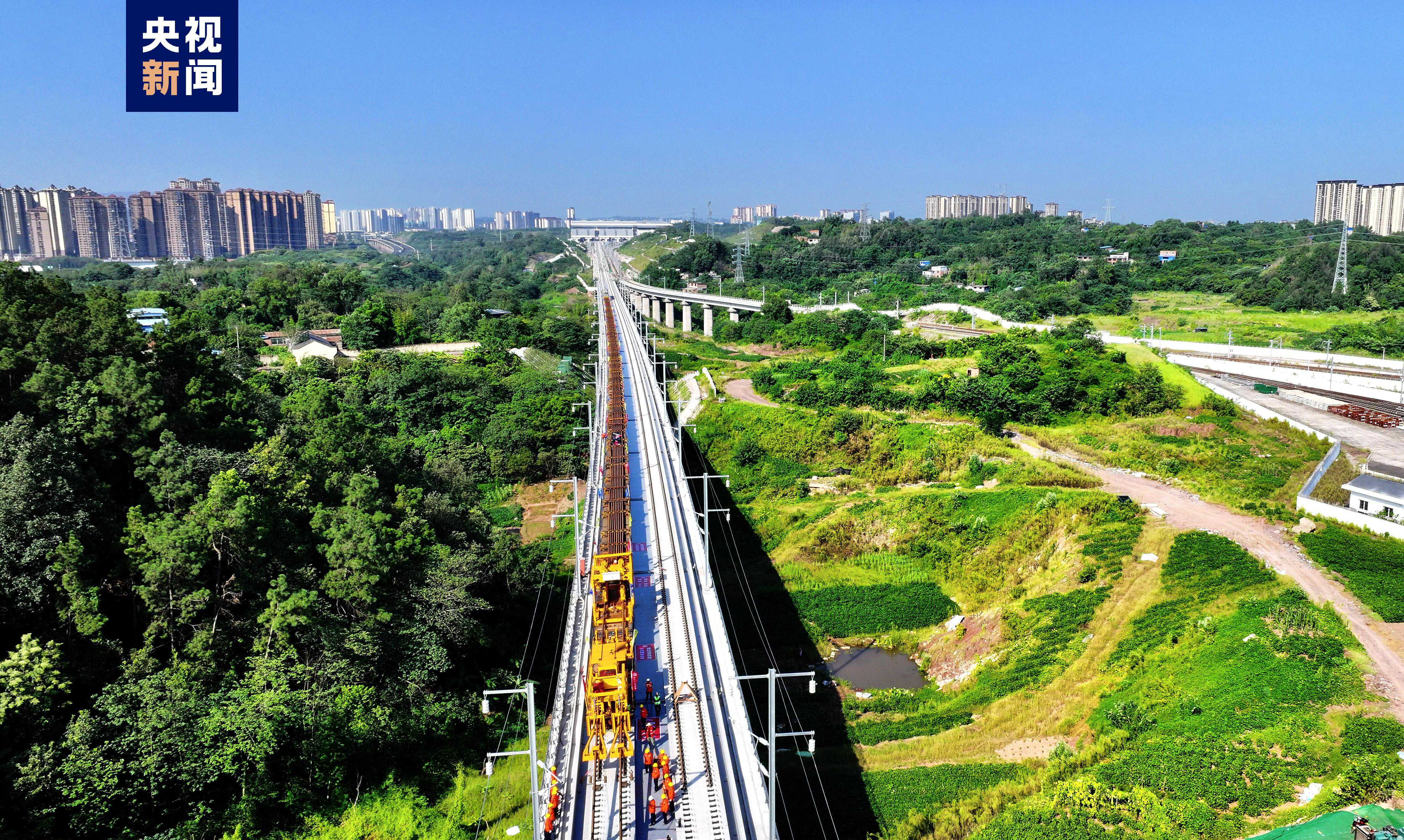 渝昆高鐵渝宜段正線全長約205公里,設(shè)計時速350公里,此次鋪軌工程量總共約391公里。鋪軌完成后將加快全線焊軌等作業(yè)。
