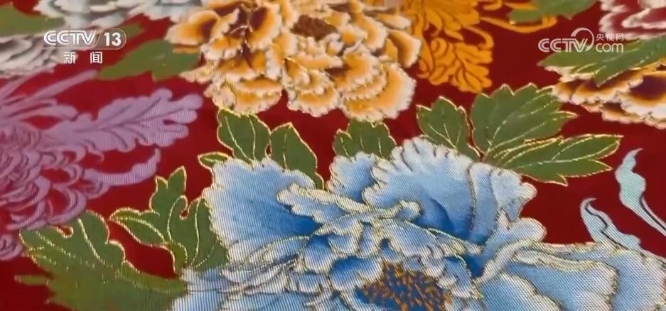 瑞蚨祥中式服裝手工制作技藝傳承人 汪超:這個就是機器(制作)的,你會看到它比較硬,比較板式一點。您看咱們手工的感覺就很軟,而且每一朵花像有生命力一樣。最不一樣看背面,它要不停地換線,不停地去計算,它哪該換線,哪該換色去織造,所以這也是機器織造物沒有辦法替代的很關鍵的點。