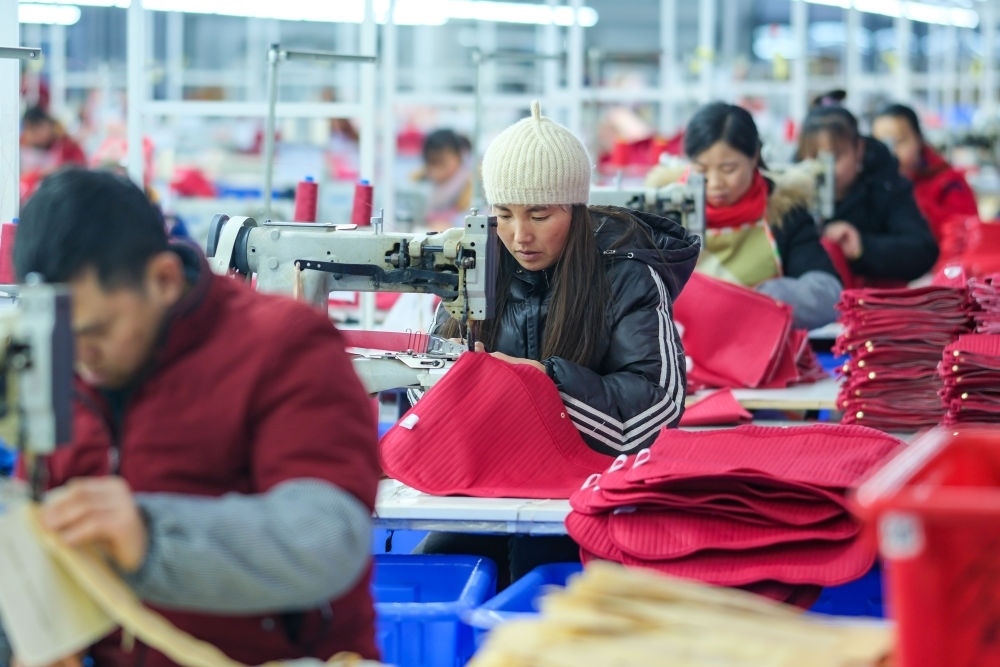 2024年1月18日,社區(qū)居民在湖南省湘西土家族苗族自治州鳳凰縣禾庫鎮(zhèn)紅安社區(qū)的鄉(xiāng)村振興就業(yè)車間工作。紅安社區(qū)是由易地搬遷安置區(qū)單獨成立的新社區(qū),也是湖南省最大的少數(shù)民族聚居安置區(qū)。新華社記者 張鋮 攝
