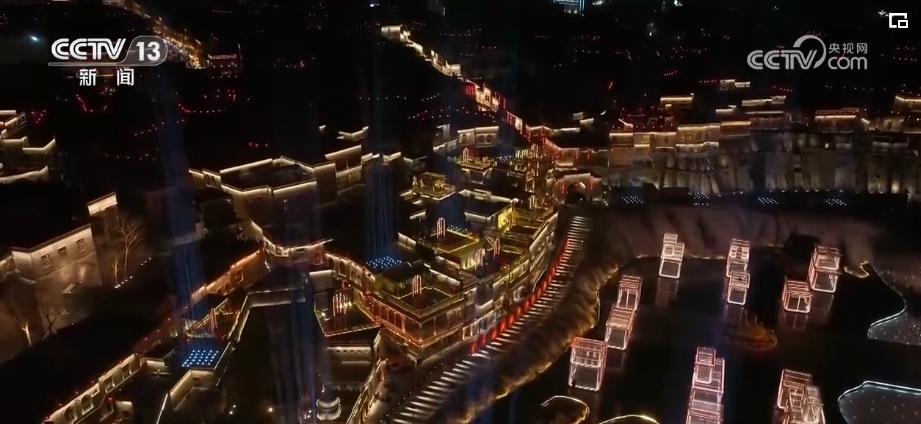 除夕當(dāng)晚9時(shí),西安分會(huì)場(chǎng)《山河詩(shī)長(zhǎng)安》篇章的“打開(kāi)方式”讓人眼前一亮。在科技助力下,“詩(shī)仙”李白跨越歲月長(zhǎng)河“穿越”而來(lái),在煙火璀璨中,隨著熙熙攘攘的人群一起走進(jìn)西安城墻永寧門,走入千年后的耀眼長(zhǎng)安。