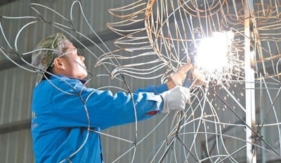 工人在對彩燈進行美飾處理。