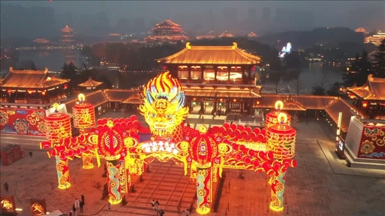 春節(jié)期間,西安大唐芙蓉園新春燈會(huì)流光溢彩,“祥龍迎春”“龍鳳呈祥”“百鳥朝鳳”……一盞盞花燈形態(tài)各異。