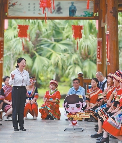 廣西壯族自治區(qū)桂林市恭城瑤族自治縣,黨員在“桂姐姐”課堂上進(jìn)行宣講。近年來,當(dāng)?shù)匾劳行聲r代文明實踐中心,組織“桂姐姐”宣講隊,傳播黨建、法律和婦女兒童權(quán)益保障等知識。各地新時代文明實踐中心成為精神文明建設(shè)的重要陣地,在加強(qiáng)思想政治引領(lǐng)、培育社會文明風(fēng)尚等方面發(fā)揮著重要作用。劉教清攝(人民視覺)