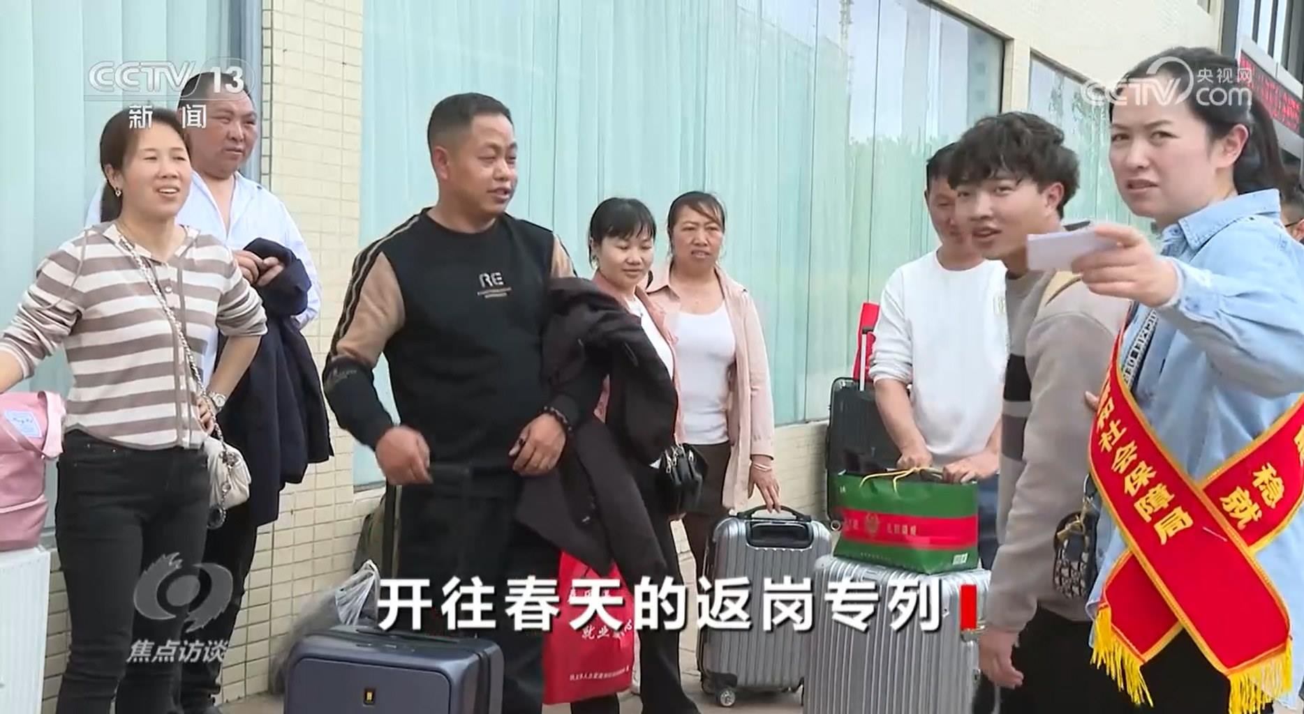 央視網(wǎng)消息(焦點(diǎn)訪談):春節(jié)假期一過,各地迎來了務(wù)工人員返崗高峰期。各地各部門組織的返崗專列、專車、專機(jī),頻繁穿梭在繁忙的交通線上。作為勞務(wù)輸出大省,貴州省跨省務(wù)工的農(nóng)村勞動力常年動態(tài)保持在600萬人左右,務(wù)工收入占到了農(nóng)村家庭總收入四成以上,占脫貧勞動力家庭收入七成以上。大量的務(wù)工人員集中在節(jié)后要趕往千里之外的工作地點(diǎn),有的還要找崗位,怎么幫助他們呢?