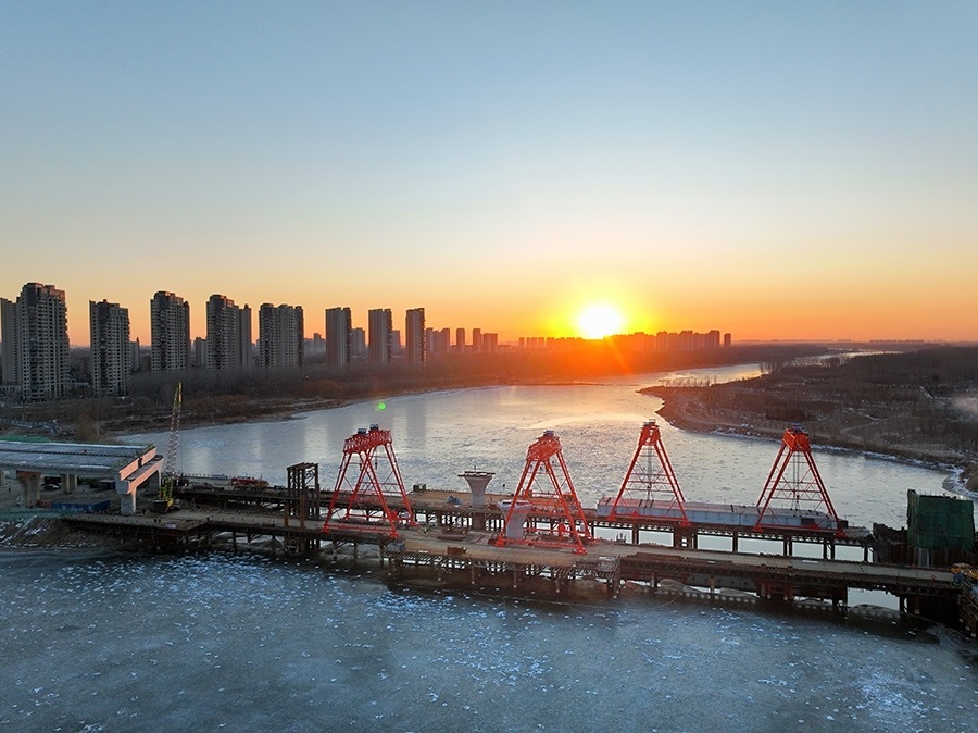 1月15日拍攝的建設(shè)中的廠通路潮白河大橋(無人機(jī)照片)。新華社記者 邢廣利 攝