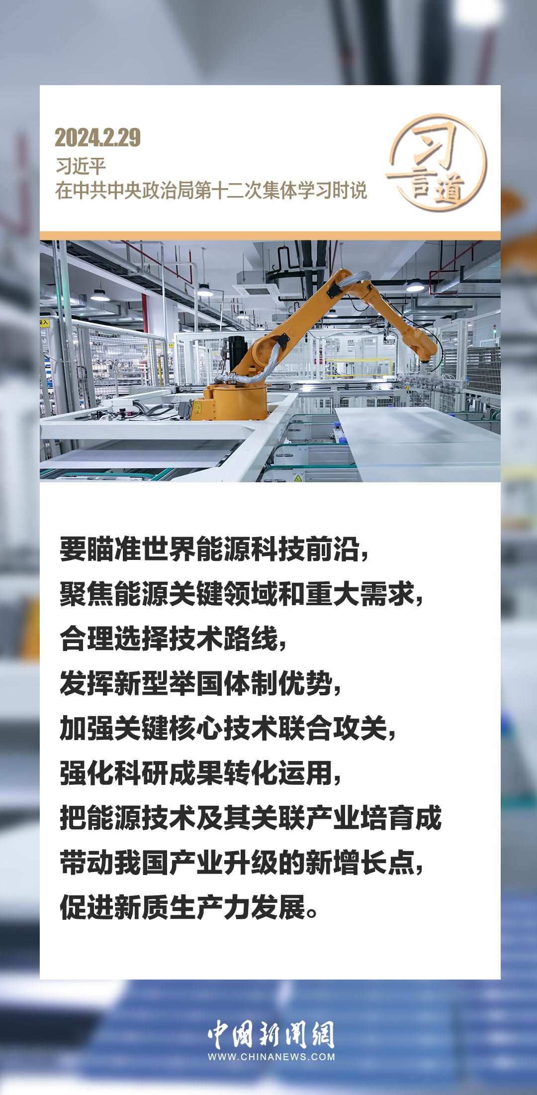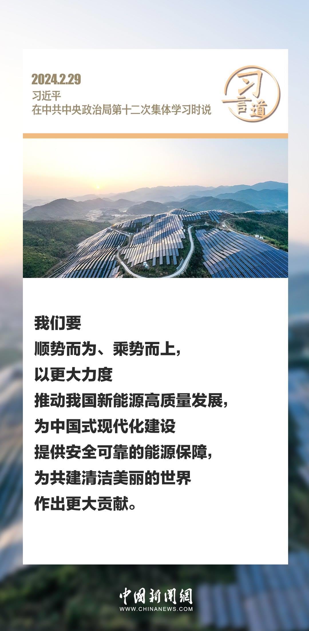 中共中央政治局2月29日下午就新能源技術(shù)與我國的能源安全進行第十二次集體學(xué)習(xí)。中共中央總書記習(xí)近平在主持學(xué)習(xí)時強調(diào)——