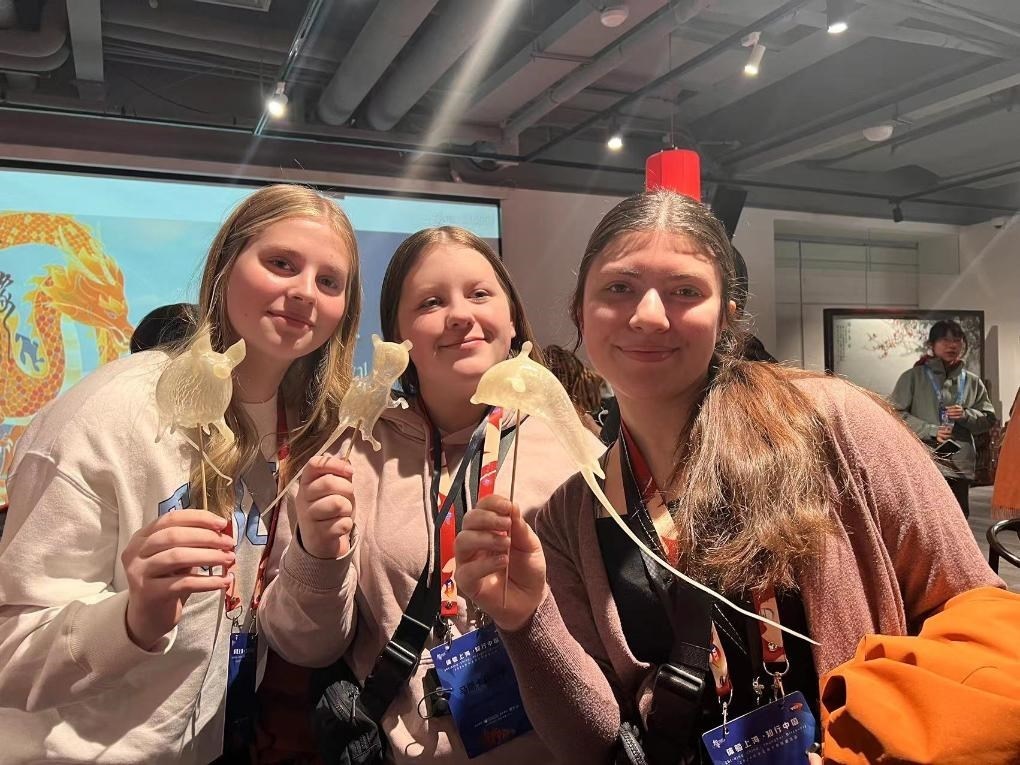 △ 2024年1月下旬,馬斯卡廷中學(xué)訪(fǎng)華代表團(tuán)學(xué)生在上海體驗(yàn)民俗活動(dòng)。