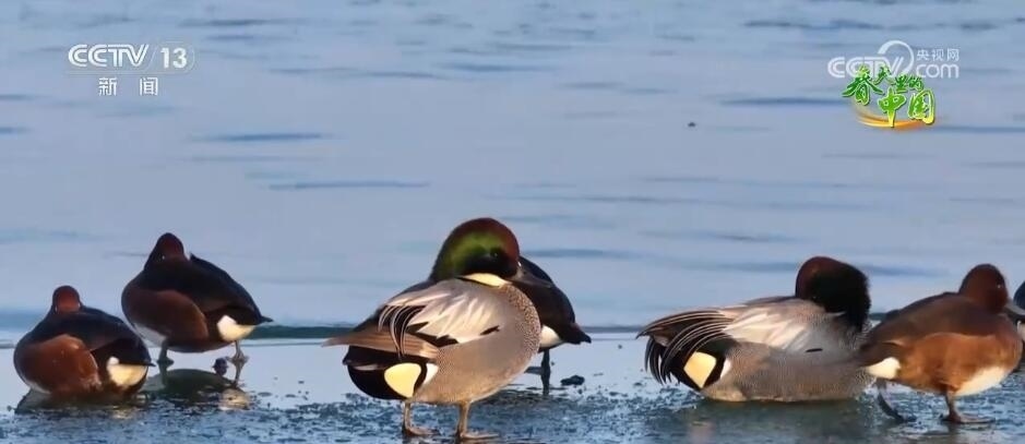 隨著天氣轉(zhuǎn)暖,山東泰安東平湖迎來了4000余只綠頭鴨、斑嘴鴨等水鳥,其中還有國家一級(jí)保護(hù)動(dòng)物青頭潛鴨。它們有的在還沒融化的冰面上休息,有的在初融的水面上蕩漾玩耍,十分愜意。近年來,東平湖及周邊地區(qū)的生態(tài)環(huán)境得到了整體改善和提升,這里成為候鳥遷徙的重要停歇地和中轉(zhuǎn)站。