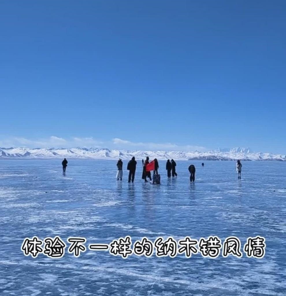 當(dāng)前,納木錯正值限定“藍(lán)冰季”,一望無際的藍(lán)色冰面,遼闊而寧靜。來自全國各地的游客來到納木錯享受別樣的冰雪風(fēng)情。