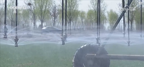 在50萬畝集中連片高標(biāo)準(zhǔn)農(nóng)田示范區(qū),種糧大戶用上了雙翼式平移自行噴灌機(jī),根據(jù)墑情調(diào)整噴頭,來控制噴水量的大小,能節(jié)水三分之一左右。