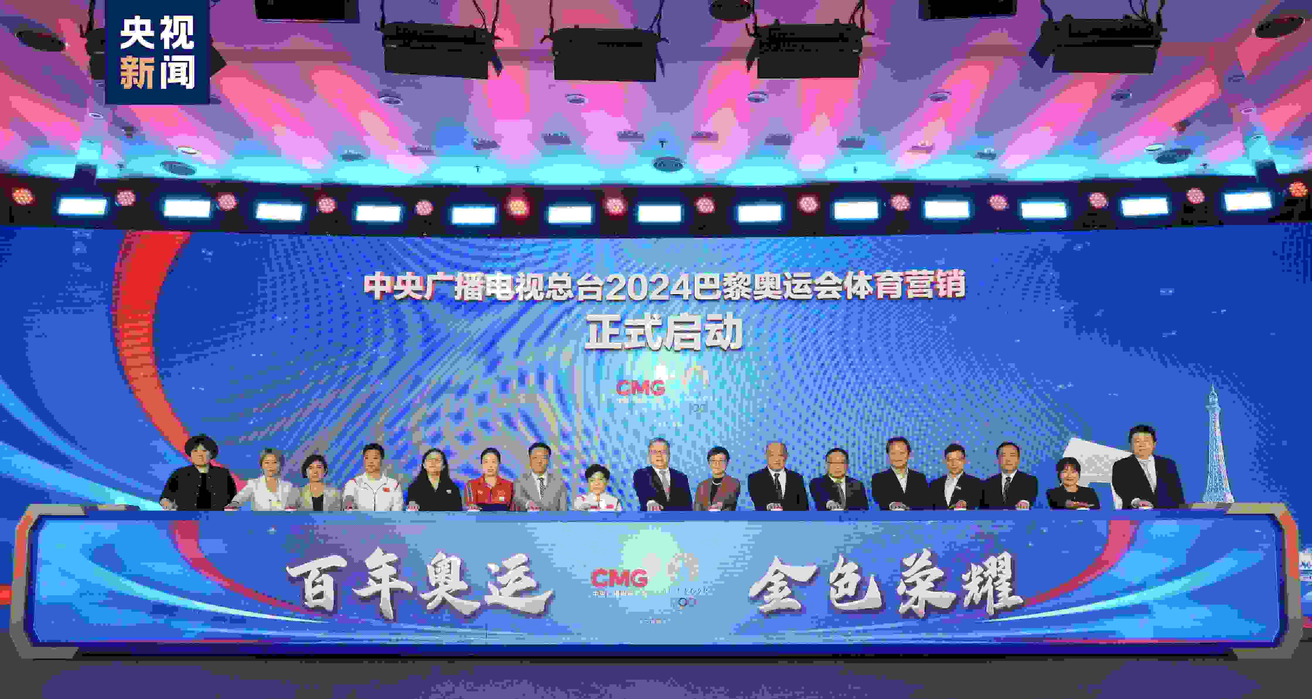 中央廣播電視總臺編務(wù)會議成員兼總經(jīng)理室總經(jīng)理彭健明出席活動,并與總臺財經(jīng)節(jié)目中心、體育青少節(jié)目中心、視聽新媒體中心、技術(shù)局、新聞新媒體中心、文藝節(jié)目中心、總經(jīng)理室相關(guān)負(fù)責(zé)人,奧運(yùn)冠軍鄧亞萍、高崚、何沖,東鵬飲料(集團(tuán))股份有限公司、寶潔(中國)有限公司、安利(中國)日用品有限公司、上海百雀羚日用化學(xué)有限公司、小紅書科技有限公司、安踏(中國)有限公司相關(guān)負(fù)責(zé)人等,共同啟動總臺2024巴黎奧運(yùn)會體育營銷。