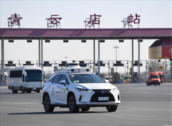 一輛自動駕駛車行駛在北京大興國際機(jī)場到亦莊的自動駕駛線路上(2024年3月1日攝)。新華社記者 鞠煥宗攝