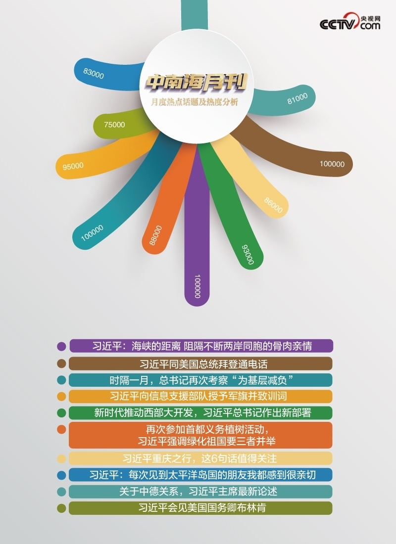 央視網(wǎng)“智聞”系統(tǒng)提取分析2024年4月全網(wǎng)時(shí)政新聞熱點(diǎn)顯示,“時(shí)隔一月,總書記再次考察‘為基層減負(fù)’”“習(xí)近平向信息支援部隊(duì)授予軍旗并致訓(xùn)詞”“習(xí)近平同美國(guó)總統(tǒng)拜登通電話”等話題備受關(guān)注。