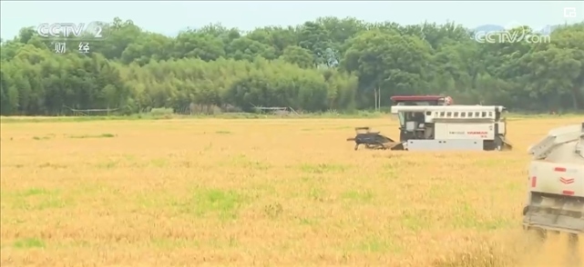 記者在臨海市永豐鎮(zhèn)南岸村的麥田里看到,收割機在麥田里來回穿梭,轉眼間,一畝畝小麥便收割完畢。