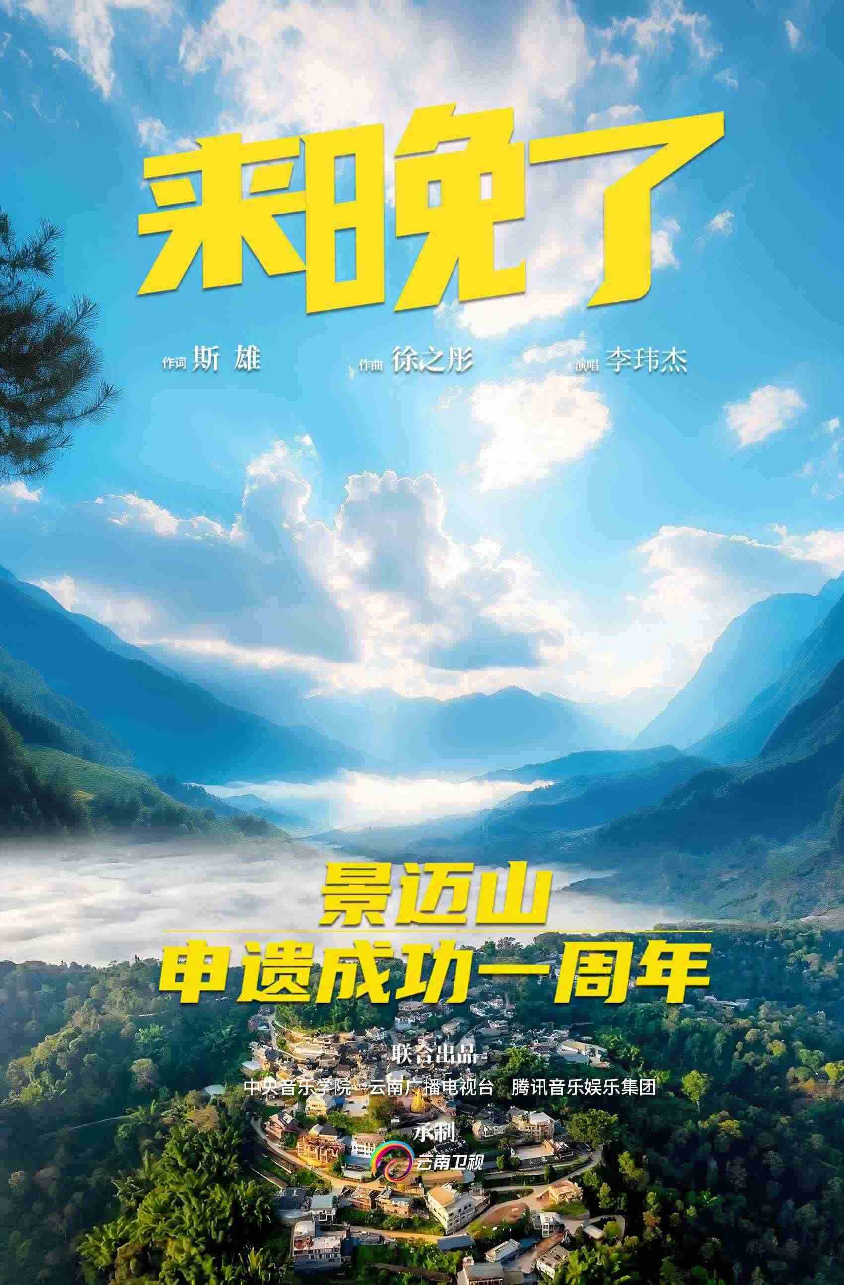為慶祝景邁山申遺成功一周年,實(shí)景版MV《來(lái)晚了》上線啦!實(shí)景版歌曲由資深媒體人斯雄作詞,中央音樂學(xué)院徐之彤教授作曲,云南音樂人李瑋杰演唱。中央音樂學(xué)院、云南廣播電視臺(tái)、騰訊音樂娛樂集團(tuán)聯(lián)合出品,云南衛(wèi)視承制。