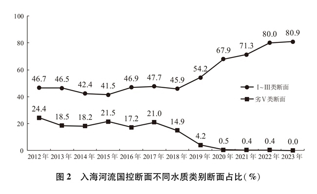 抓好入海河流污染防治。入海河流是陸源污染物輸入海洋的最重要途徑。中國積極提升城鎮(zhèn)污水處理質(zhì)效,建設(shè)改造雨污分流管網(wǎng),加強污水處理行業(yè)監(jiān)管,降低城鎮(zhèn)生產(chǎn)生活污水對入海河流水質(zhì)影響。2012年以來,沿海地區(qū)污水處理基礎(chǔ)設(shè)施建設(shè)顯著提速,地級以上城市污水處理廠基本完成一級A提標(biāo)改造。開展農(nóng)村環(huán)境整治,“十四五”以來,沿海省份新增完成1.7萬個行政村環(huán)境綜合整治,編制完成170個畜牧大縣畜禽養(yǎng)殖污染防治規(guī)劃,農(nóng)村生活污水治理率超過45%,大幅降低農(nóng)業(yè)農(nóng)村污水排放。著力破解流域氮排放過量的近岸海域水質(zhì)污染和富營養(yǎng)化問題,建立沿海、流域、海域協(xié)同一體的綜合治理體系,探索將總氮控制范圍向入海河流上游拓展,推動入海河流實施“一河一策”總氮治理。2012-2017年中國入海河流國控斷面水質(zhì)整體保持穩(wěn)定并有所好轉(zhuǎn),2018年以后水質(zhì)整體大幅好轉(zhuǎn)。目前,入海河流國控斷面水質(zhì)優(yōu)良(Ⅰ~Ⅲ類)斷面數(shù)量約占整體的五分之四左右,喪失使用功能(劣Ⅴ類)斷面基本消除。