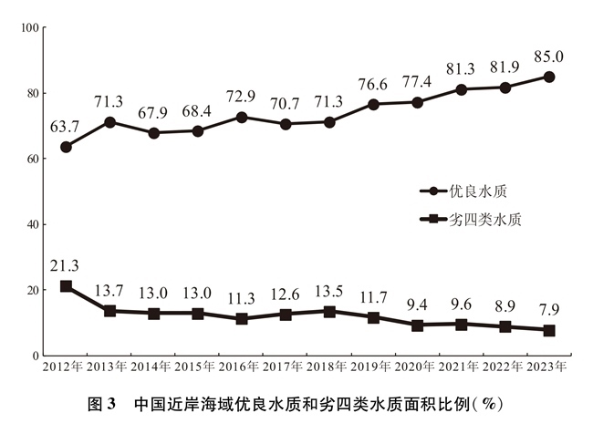 通過深入推進(jìn)重點海域綜合治理、陸海污染協(xié)同防治,持續(xù)建設(shè)美麗海灣,中國近岸海域水質(zhì)總體改善,2023年優(yōu)良水質(zhì)面積比例較2012年高出21.3個百分點。