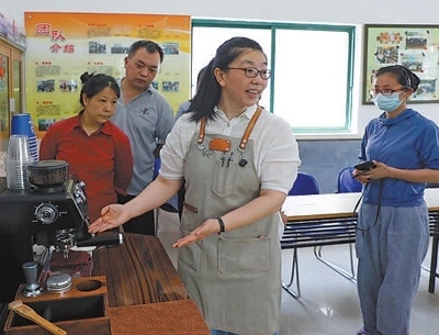 城市治理浦東新區(qū)滬東新村街道壽二就業(yè)服務(wù)站,專業(yè)老師為轄區(qū)10多名人員舉辦咖啡技能體驗與培訓(xùn)活動。李茂君攝(人民視覺)