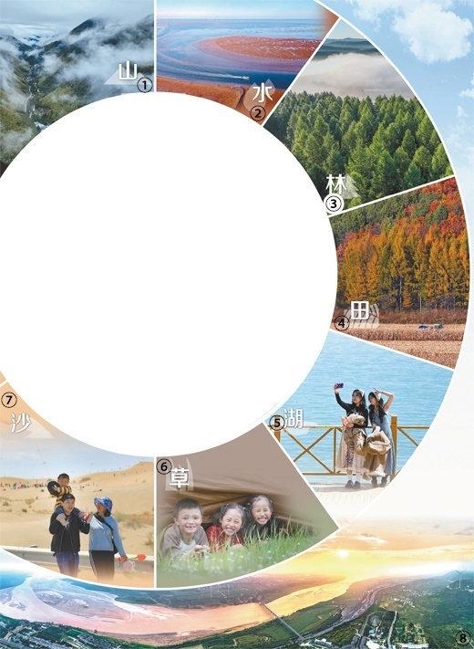 圖①:雨后的武夷山國(guó)家公園云霧繚繞。國(guó)家公園是我國(guó)自然生態(tài)系統(tǒng)中最重要、自然景觀最獨(dú)特、自然遺產(chǎn)最精華、生物多樣性最富集的部分,我國(guó)國(guó)家公園建設(shè)是生態(tài)文明建設(shè)中具有示范引領(lǐng)意義的工程。邱汝泉攝(新華社發(fā))圖②:山東東營(yíng)市紅灘濕地旅游區(qū)生態(tài)濕地,生長(zhǎng)在灘涂上的堿蓬等鹽生植物,如同一塊巨大的紅地毯。劉智峰攝(影像中國(guó))圖③:河北承德市圍場(chǎng)滿族蒙古族自治縣塞罕壩國(guó)家森林公園。組建至今,塞罕壩機(jī)械林場(chǎng)營(yíng)造人工林百萬(wàn)畝,創(chuàng)造了荒原變林海的奇跡。劉滿倉(cāng)攝(影像中國(guó))圖④:黑龍江雞西密山市黑土地上種植的玉米。近年來,我國(guó)加強(qiáng)黑土地保護(hù),守護(hù)“耕地中的大熊貓”。孫樹寶攝(影像中國(guó))圖⑤:游客在青海湖畔拍照。當(dāng)?shù)亓己玫纳鷳B(tài)環(huán)境和優(yōu)美的景色吸引了來自全國(guó)各地的大量游客。新華社記者 張 龍攝圖⑥:四川甘孜藏族自治州日通草原上,躲在帳篷里的小朋友享受假日生活。我國(guó)持續(xù)推進(jìn)草原生態(tài)保護(hù)修復(fù),穩(wěn)步提升草原生態(tài)功能。新華社記者 江宏景攝圖⑦:新疆博湖縣博斯騰湖畔的艾勒遜烏拉沙漠,游客正帶著孩子在游玩。近年來,我國(guó)推進(jìn)科學(xué)化、規(guī)?;紊?,重點(diǎn)治理區(qū)實(shí)現(xiàn)“沙進(jìn)人退”到“綠進(jìn)沙退”的歷史性轉(zhuǎn)變。年 磊攝(人民視覺)圖⑧:黃河陜西潼關(guān)段景觀。近年來,我國(guó)持續(xù)推動(dòng)黃河流域生態(tài)保護(hù)和高質(zhì)量發(fā)展,流域生態(tài)環(huán)境持續(xù)明顯向好,讓黃河成為造福人民的幸福河。王生暉攝(人民視覺)